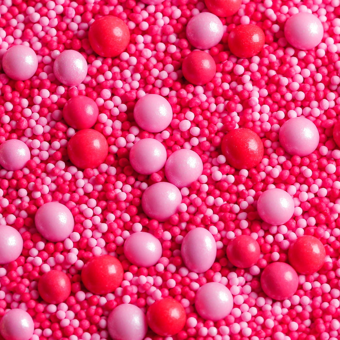 Mini Sprinkles: Sugar, Corn starch, Colours (E162 beetroot red, E171 titanium dioxide, E160a carotenes, E160c paprika), Anti-caking agent (potassium aluminium silicate), Stabilisers (maltodextrin, gum Arabic), Glazing agent (carnauba wax).