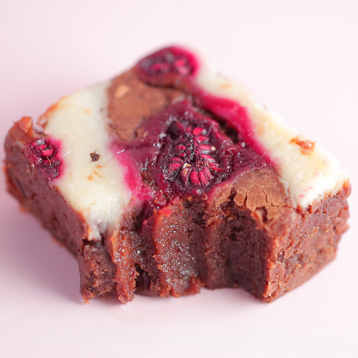 Ingredients: Salted butter (milk), 54% dark chocolate (sugar, cocoa butter, cocoa mass, emulsifier: soya lecithin, natural vanilla), Eggs, Granulated sugar, Light brown sugar, Wheat flour (gluten), 70% dark chocolate (sugar, fat-reduced cocoa powder, cocoa mass, emulsifier: soya lecithin, natural vanilla), Cream cheese (milk), Icing sugar, Frozen raspberries/black forest fruits, Lemon zest, Lemon juice.