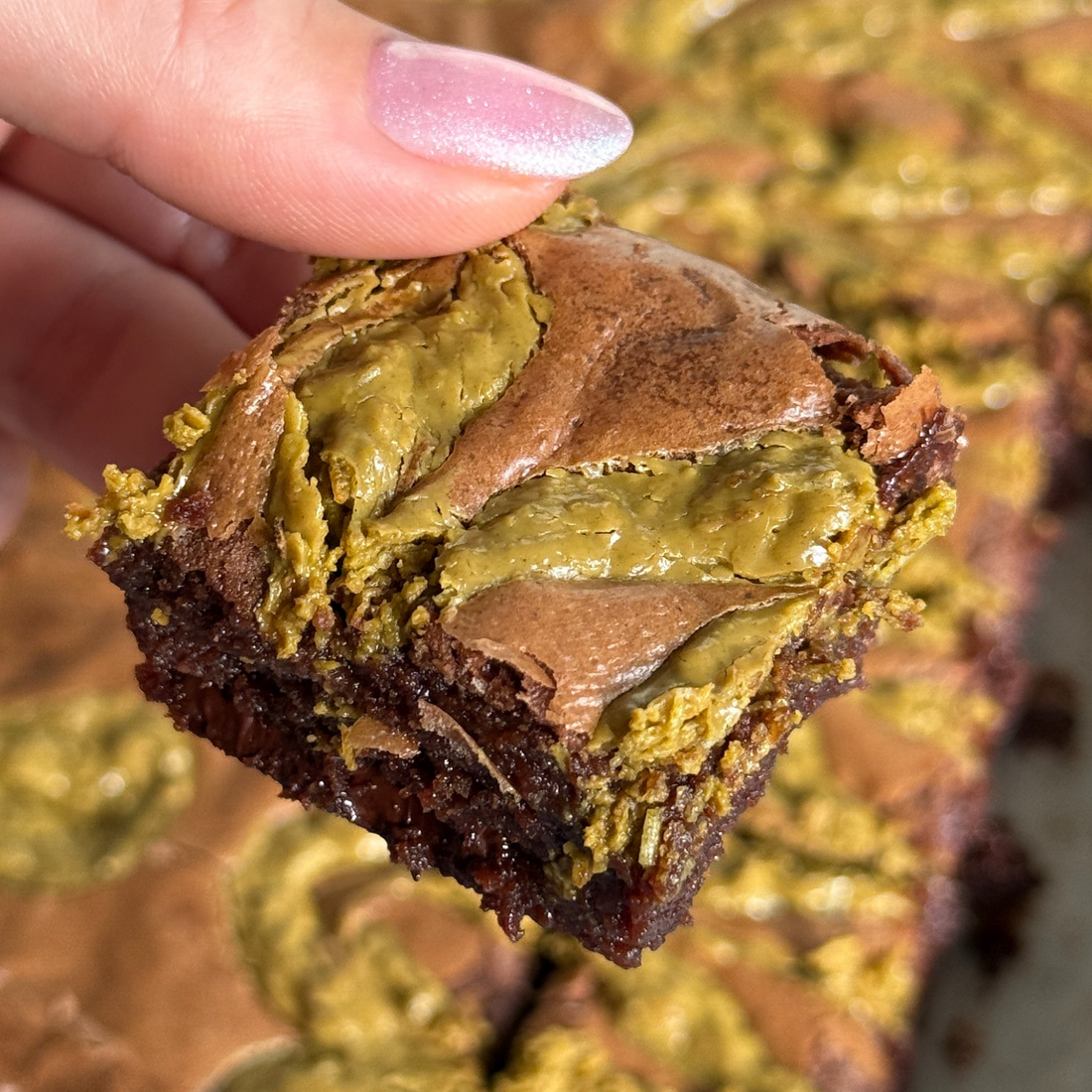 Ingredients: Dark chocolate (sugar, cocoa butter, cocoa mass, emulsifier: lecithins (soya), flavouring), Butter (milk), Wheat flour (gluten), Sugar, Eggs, Pistachio cream (pistachios, sugar, milk powder, extra-virgin olive oil, vegetable fats (sunflower oil, cocoa butter), emulsifier: lecithins (soya)), Kataifi pastry (wheat flour (gluten), maize starch, rapeseed oil, water, salt, preservative: E202), Tahini (sesame).