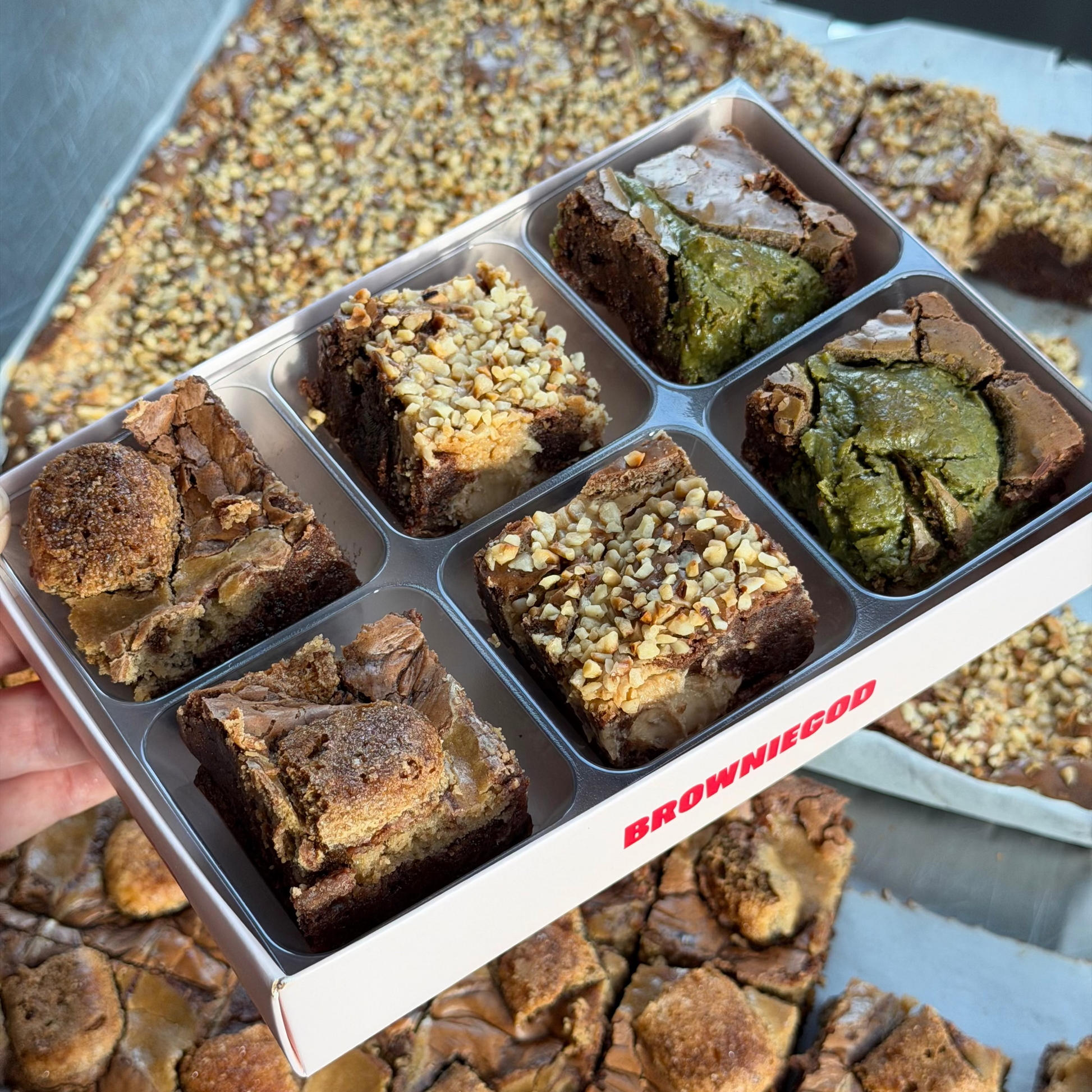 Three exclusive brownie flavours in one Mix Box, rotating every month. Same indulgent brownies, just more variety.